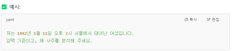 - 성별 (사주 해석에 따라 달라질 수 있음)